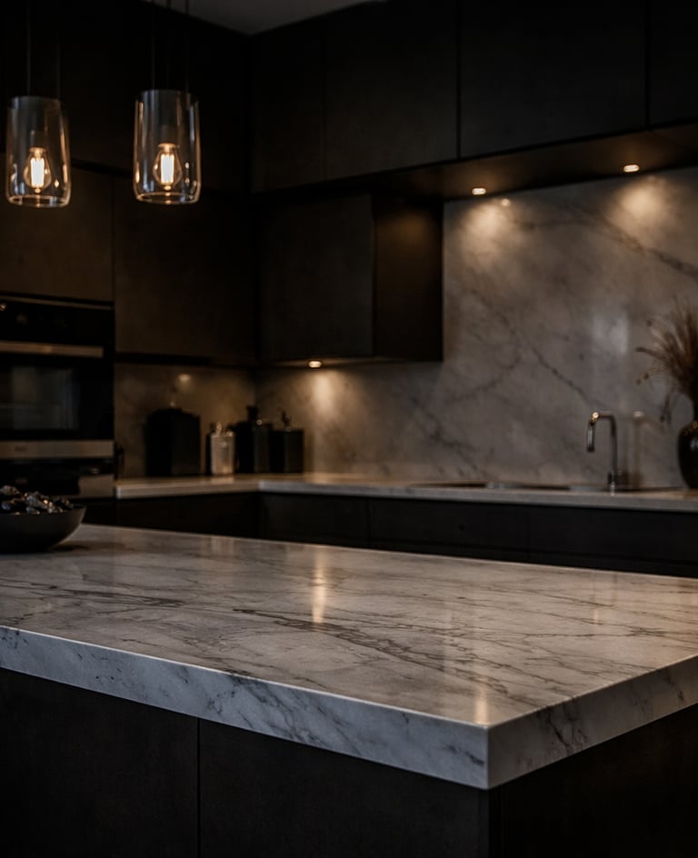 Mermer, granit ve kuvars mutfak tezgahlarında özel üretim ve profesyonel uygulama için
